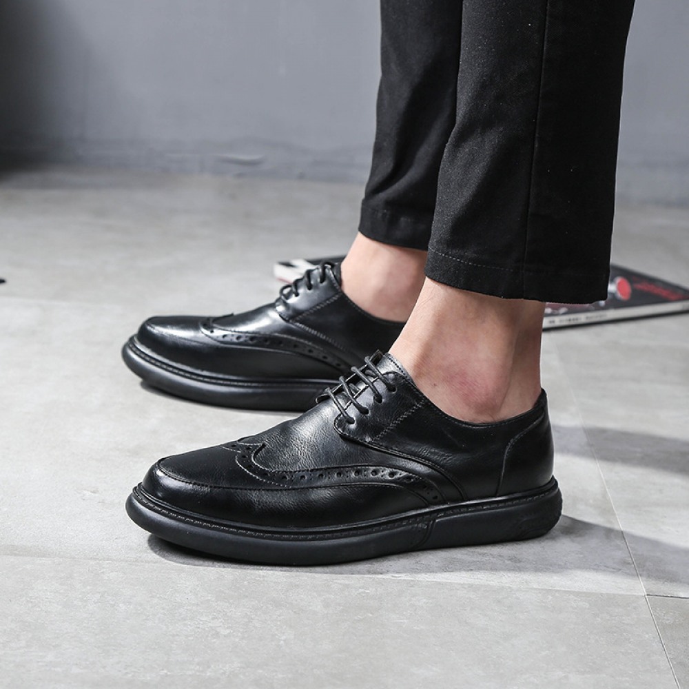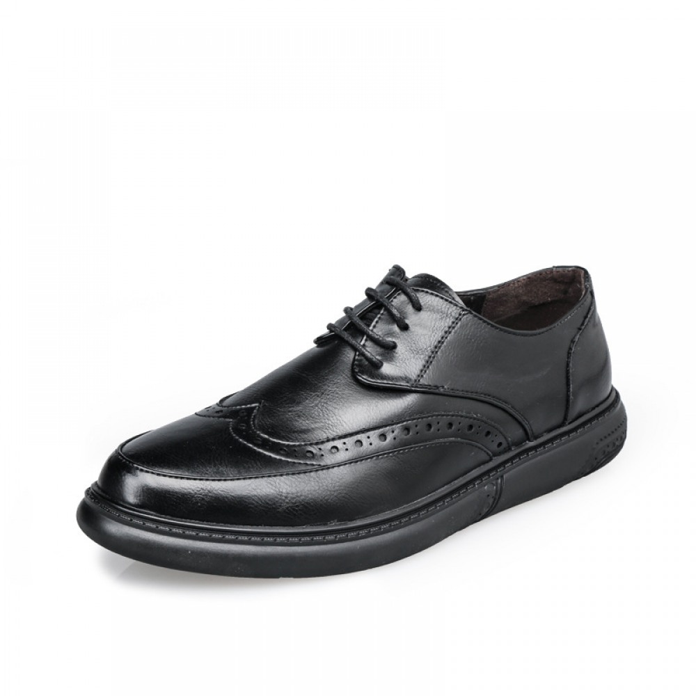 Black Men's Small Leather Shoes Mens Trend Casual Leather Breathable Shoes