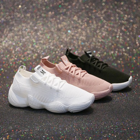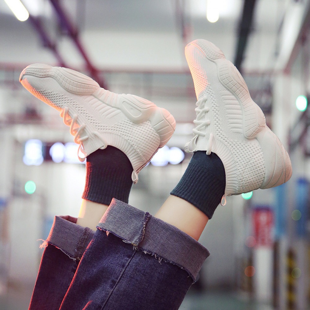 Flying Woven Sports Shoes Female Breathable White Shoes Female Summer New Student Running Board Shoes