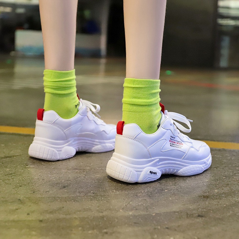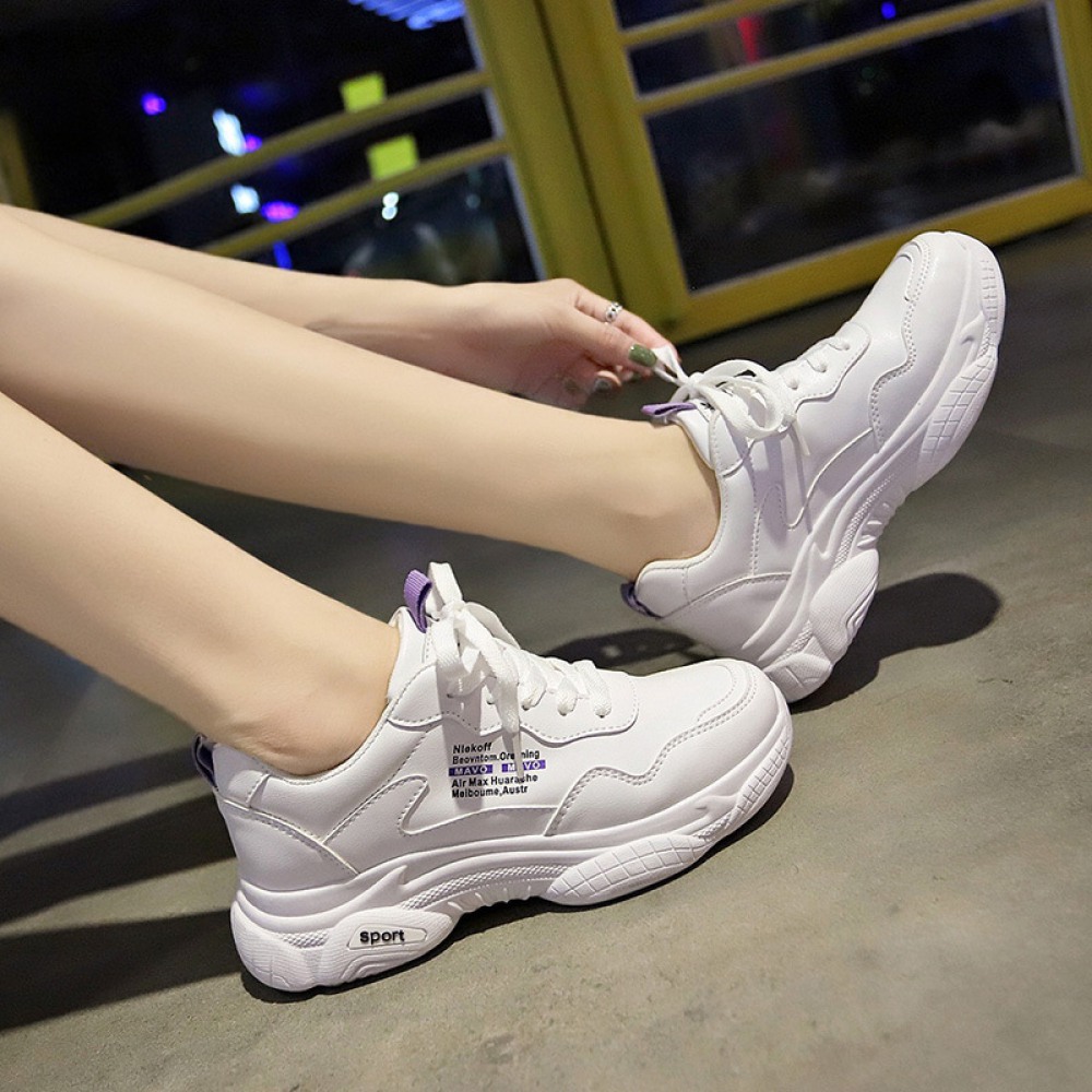 White Shoes Female Spring New Student Running Board Shoes Female Increased Sports Casual Shoes Laces